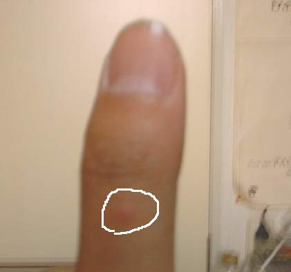 | ふと親指を見るとバスの歯での傷でなくポッツリ蚊の刺された後が。 | |||