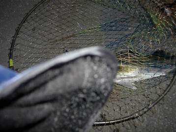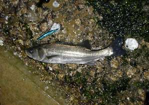 某B級ルアー列伝のルアーチューニングでおなじみの安!?さんと羽田(海老取川)へバチ抜けで狂喜乱舞している予定のスズキを釣りに出かける。19時過ぎ現地に到着し川の状況を確認。ちょろちょろ、うねうねとゴカイが数匹。おぉ〜これがバチ抜けか!天然ゴカイをみるのは初体験。数が少ないのがちと寂しい....安!?さんにポイントを教わり |