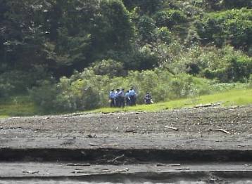 しばらくするとなんか青っぽい制服をきた国家公務員の方々がまさに昨日釣りをしたポイントでなにやら作業をしている。一見お宝探しのようにも見えるが...。何かを拾っては袋につめたりなんかして。道路では周りの一般人に何か聞いたりしている。まさか!いやいや違う、お宝探しに決まってる。いや、最悪でも不法投棄かなんかの調査に違いない。それにしてはやや大げさ、国家公務員の方々の数が多い。う〜ん今後ますます丹沢湖から足が遠のいてしまう。